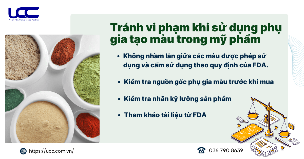 - Không nhầm lẫn giữa các màu được phép sử dụng và cấm sử dụng theo quy định của FDA.